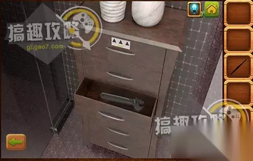 抽屉第三层拿到扳手。