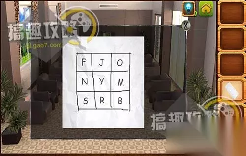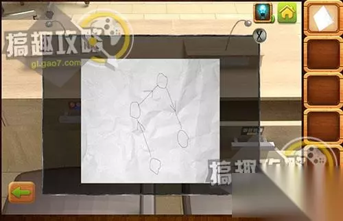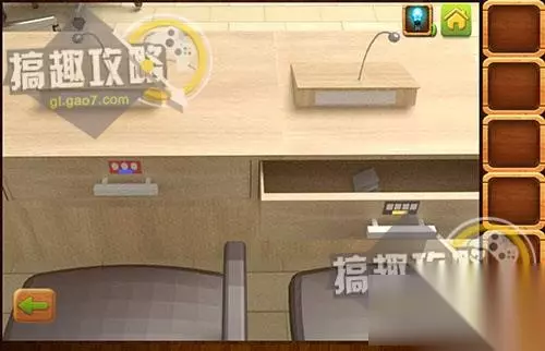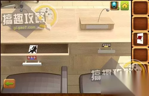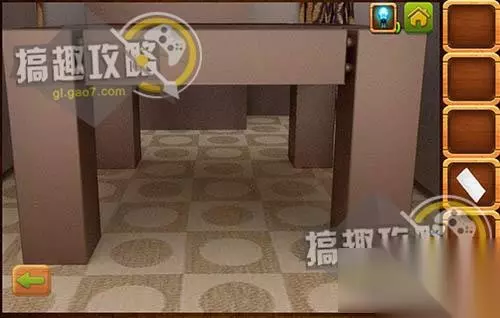在左边后面的桌面下面拿到提示纸。