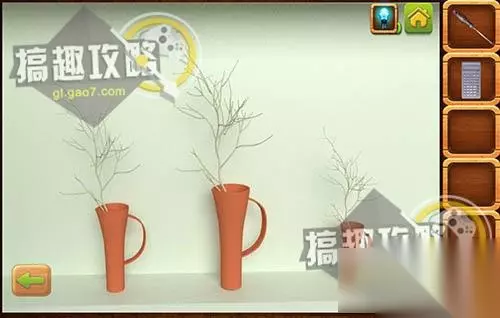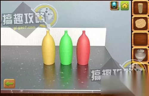 根据颜色来调整柜子上的花盆蓝、绿、红,完成后拿到水。