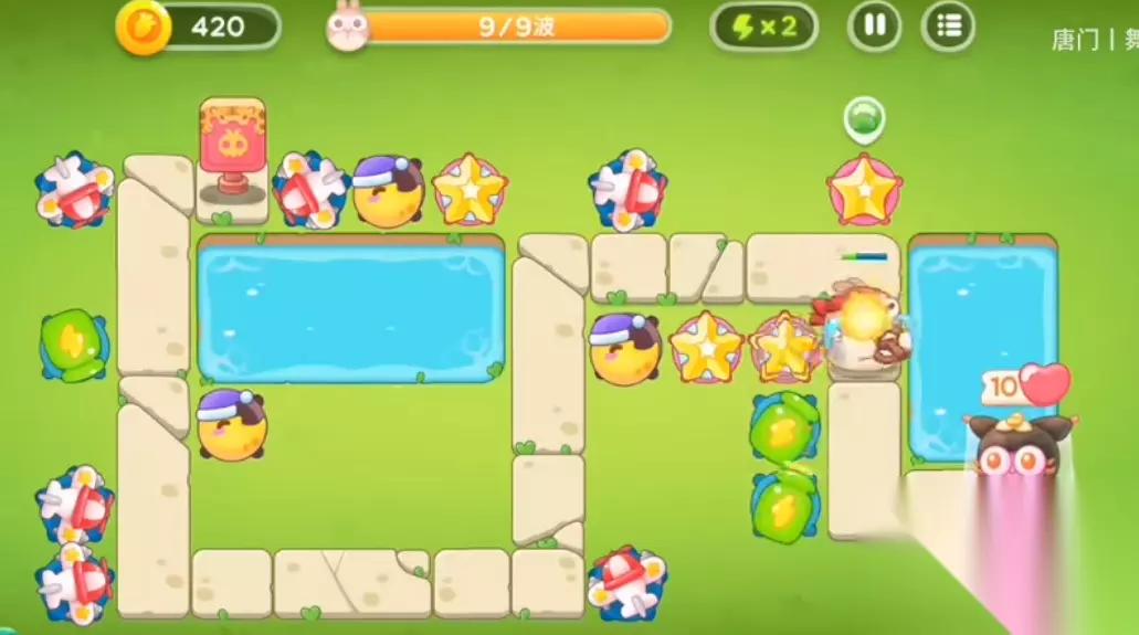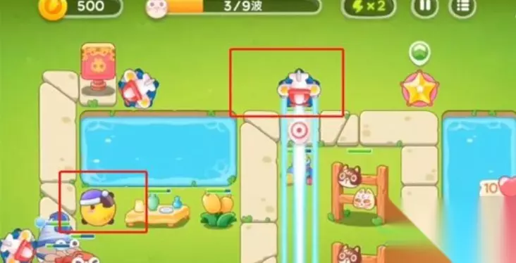 捍卫萝卜4白萝卜传奇第22关攻略 1、游戏开端在左下角加飞机塔。