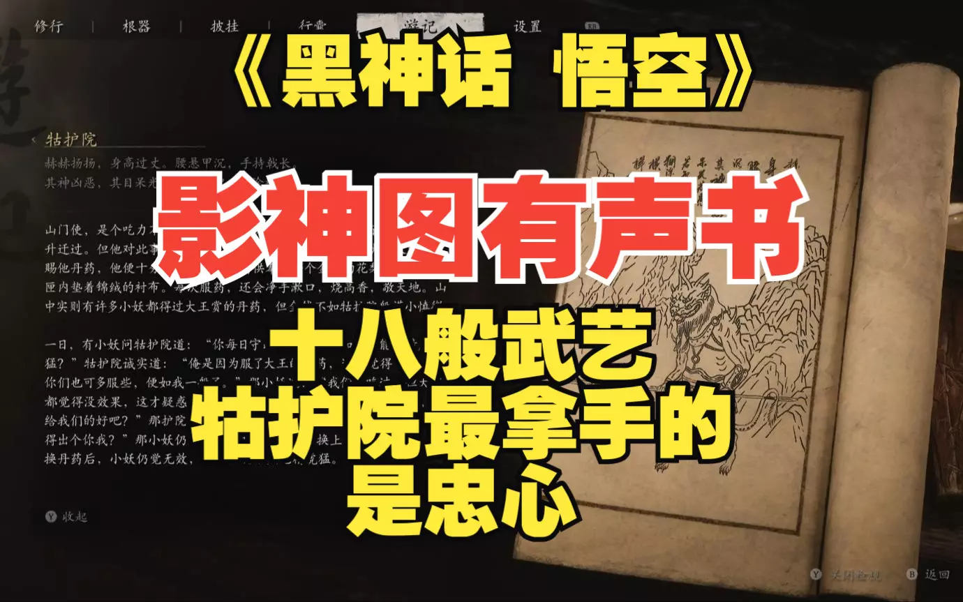 这是《黑神话:悟空》第三章小张太子的影神图有声书内容,介绍了小张太子的出身、拜师泗州大圣的缘由,以及他两次对战黄眉均落败的经历,他虽自诩天命所归,却没能参透天命。
