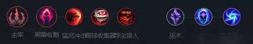 4、符文推荐:【主宰+黑暗收割+猛然冲击+眼球收集器+寻宝猎人+巫术+超然+风暴聚集】