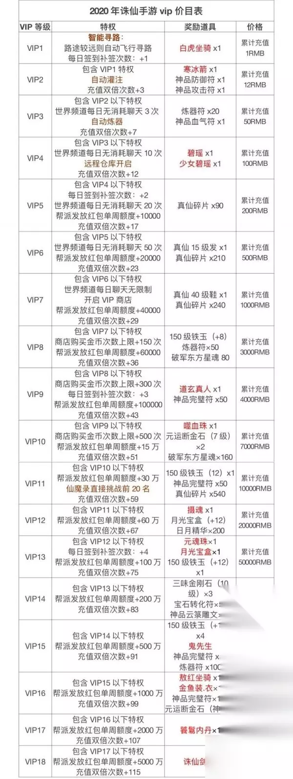 诛仙手游vip价格表一览: vip1~1RMB vip2~12RMB vip3~50RMB vip4~100RMB vip5~200RMB vip6~500RMB vip7~1000RMB vip8~3000RMB vip9~4000RMB vip10~7000RMB vip11~10000RMB vip12~20000RMB vip13~50000RMB vip14~100000RMB vip15~200000RMB vip16~400000RMB vip17~600000RMB vip18~1000000RMB