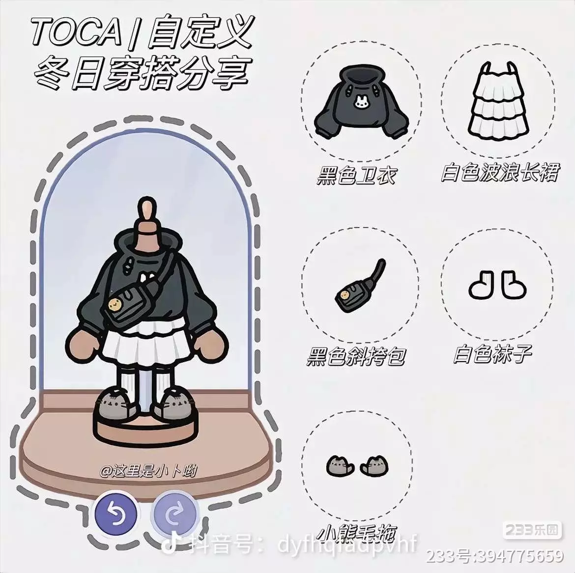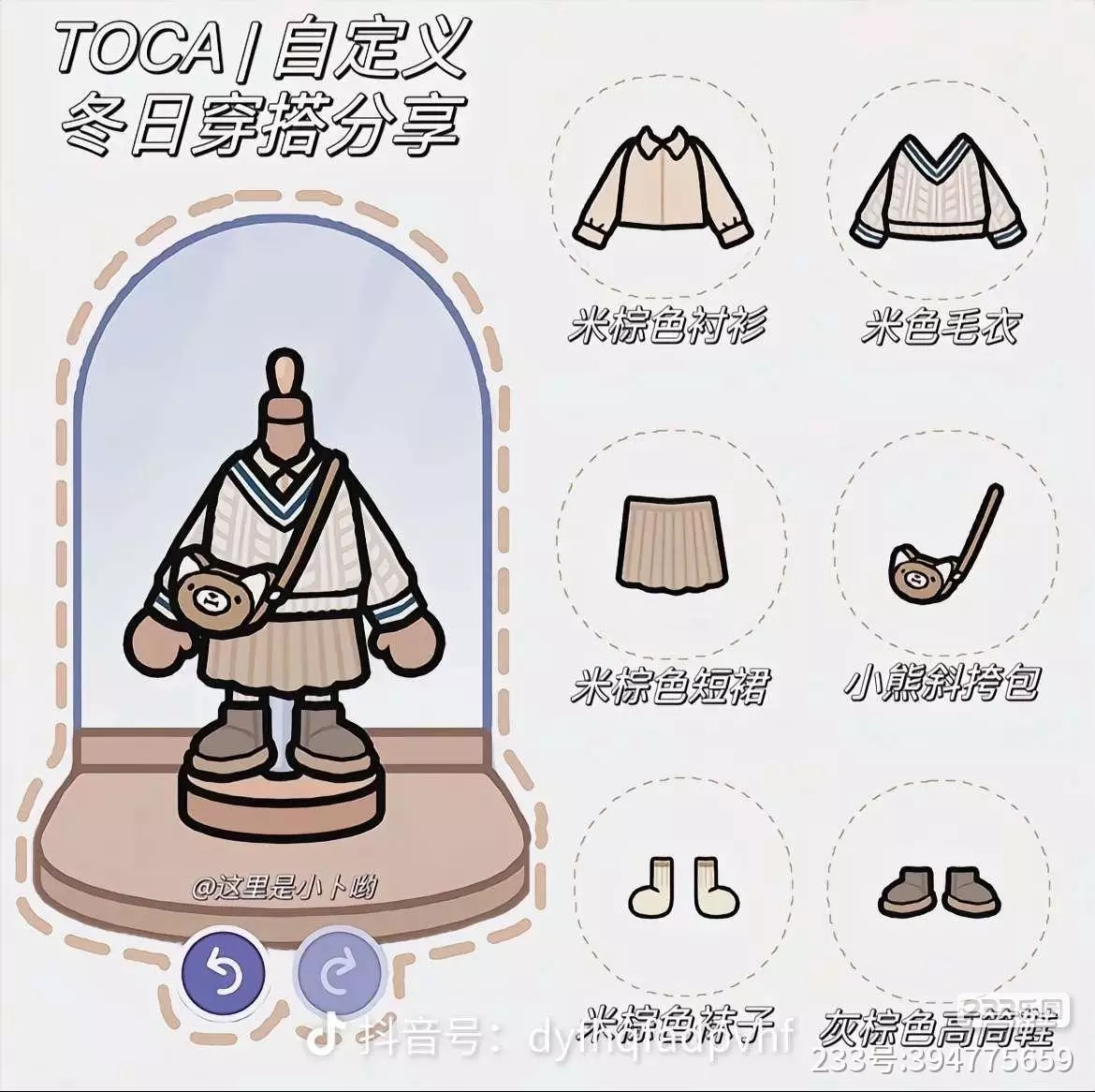 衣服可以偏混搭的那种,反正你喜欢什么就可以自己搭配,像那种什么小清新的,法式一点的,格子裙或者是那种校园风,秋冬装都很适合。官方真的很细节了,还会加一些小配饰,比如说手链,项链,当然还是有袜子的。🌝🤳