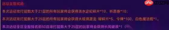 荣耀奖励:分层激励,强者为尊本次奖励采用阶梯式发放模式,通关层数越高,回报越加丰厚:达成条件专属奖励内容突破21层洛水宓妃碎片×10(集齐可召唤水系至强幻灵)+祈愿券×10(神卡召唤关键道具)征服25层太极溯源龙·屋碎片×5(龙族进阶核心材料)+令牌×100+白色魔法瓶×1(珍贵资源储备)全服前50名限定称号"长风破浪"(可兑换以下任意一项):▶ 纯净能源块×10(装备强化核心素材)▶ 白魔法×1(传奇法术卷轴)▶ 审判者×10(光系顶级战斗单位)闯关秘技:三段实力跃升策略21层突破阶段 重点配置群体清场类法术卡(如"陨星坠落") 携带具备穿透装甲能力的物理输出角色 预留3张以上复活类卡牌应对突发减员 25层最终攻坚 必备克制楚国阵营卡("破楚弓"伤害增幅40%) 部署双治疗体系(推荐"圣愈祭司"+"生命古树"组合) BOSS狂暴阶段使用时间停滞类控制技能 巅峰排名争夺战 每日凌晨5点刷新挑战次数,把握时机全力冲击 组建纯系共鸣阵容激活阵营属性加成 预留奥义连携技应对最终BOSS三阶段变身 新版远征既是勇者的试炼地,也是资源的宝库,每一次突破都将带来战力的飞跃。调整你的卡组构筑,优化出战顺序,这片浓缩的高强度战场正等待真正的战略大师前来征服!立即出发,让“长风破浪”的荣誉铭刻你的传奇之名。(更多精彩版本解读,请持续关注奇幻卡牌战略研究所)