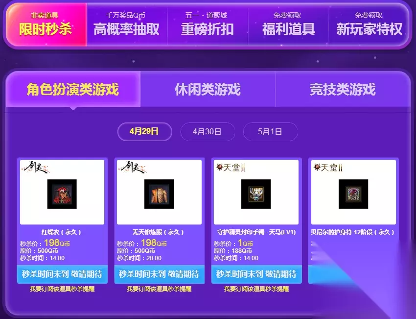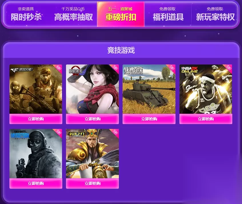 QQ炫舞道聚城 五一超惠玩 活动时间:2017年4月20日—5月1日 限时秒杀