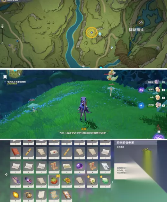 3.根据任务指引将薄荷交给凯万后,又要我们去找“特别的香辛果”。 在降诸魔山的左下方,击败中间的翼蕈兽,即可获得任务道具“奇特的香辛果”。