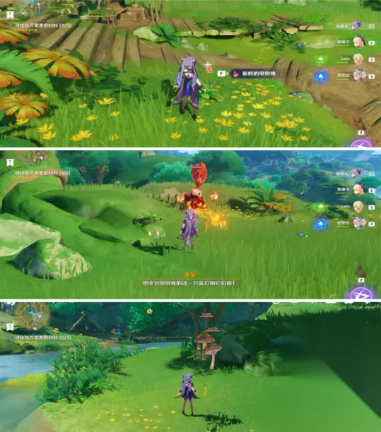 一处可直接摘取,一处要击败一只骗骗花,一处在两只蕈兽的中间。