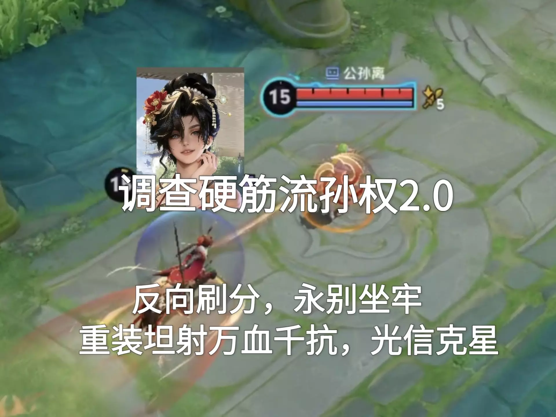 这是《王者荣耀》的教学内容,带来故氏的孙权铭文出装顺序教学,展示了其国服孙权的战力排名,还呈现了新赛季单排用欧美流孙权对线元歌,打出13杀、15.5评分的精彩对局表现。
