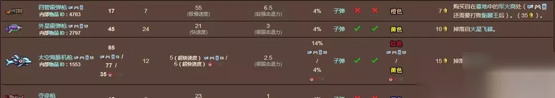 至于其它的枪械武器则通过怪物掉落、破坏物体掉落、购买等途径获取。比如太空海豚机枪通过最终Boss月总掉落,四管霰弹枪在墓地军火商处购买等等。