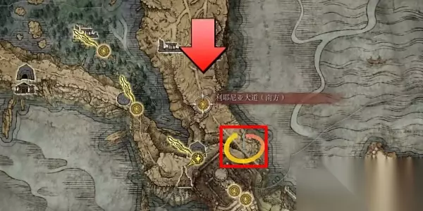 《艾尔登法环》大树矛怎么获取 1、大树矛,这个矛的战技是极其少见的圣律,极其克制死诞者一类敌人,在使用该武器击杀骷髅兵之后他们不会复活。 2、该武器在利【耶尼亚大道南方】的这个位置,具体位置在下面右下角红色方框标识出来的位置处。