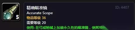 魔兽世界怀旧服精确瞄准镜 效果:在弓或枪械上加装永久性的瞄准镜,使其攻击伤害提高3点。