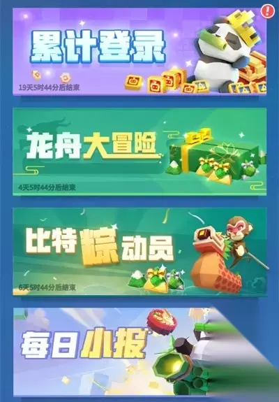限时活动 限时活动是另一大粉钻主要来源,但这类活动大多具有时效性,错过这个村可就没这个店了。比如当前开放的龙舟大冒险、比特粽动员、每日小报都有机会可以获得粉钻。