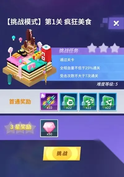 挑战模式 首次通关三星挑战模式,即可获得粉钻奖励,但要注意,挑战模式考验操作,我们的战力如果过高会被“和谐”,从而最大程度确保挑战模式的“挑战性”。