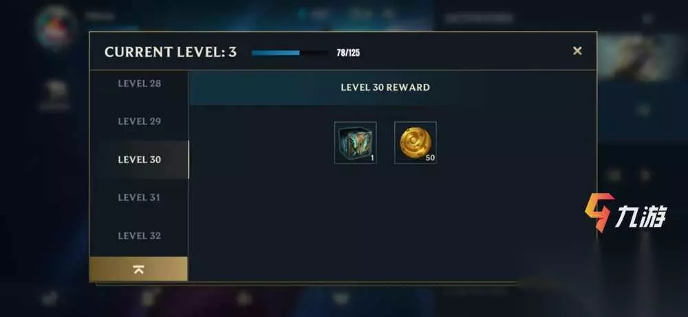 在30级的时候,将可以获得1个海克斯宝箱以及50商店金币的奖励;