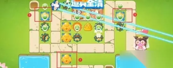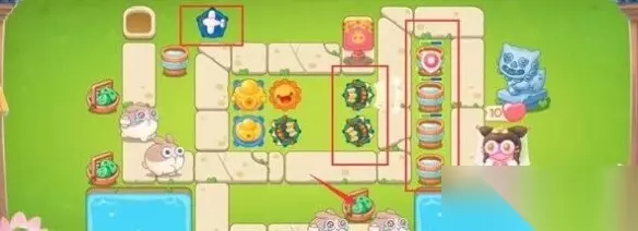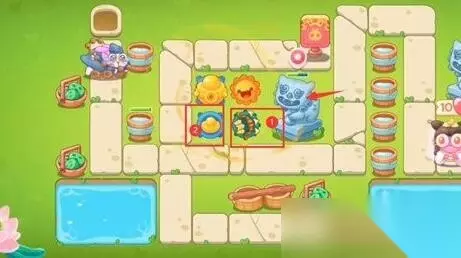 《保卫萝卜4》白萝卜传奇第41关无伤通关攻略 通关步骤 1、开始时在两个位置分别放置一个太阳花和一个元宝,这两个都是大范围伤害的炮塔,可以快速清理周边的障碍物。