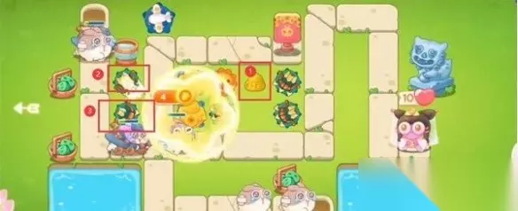 7、最后一波兔子很多,需要补充一些炮塔,按照下面的编号顺序进行补充即可。