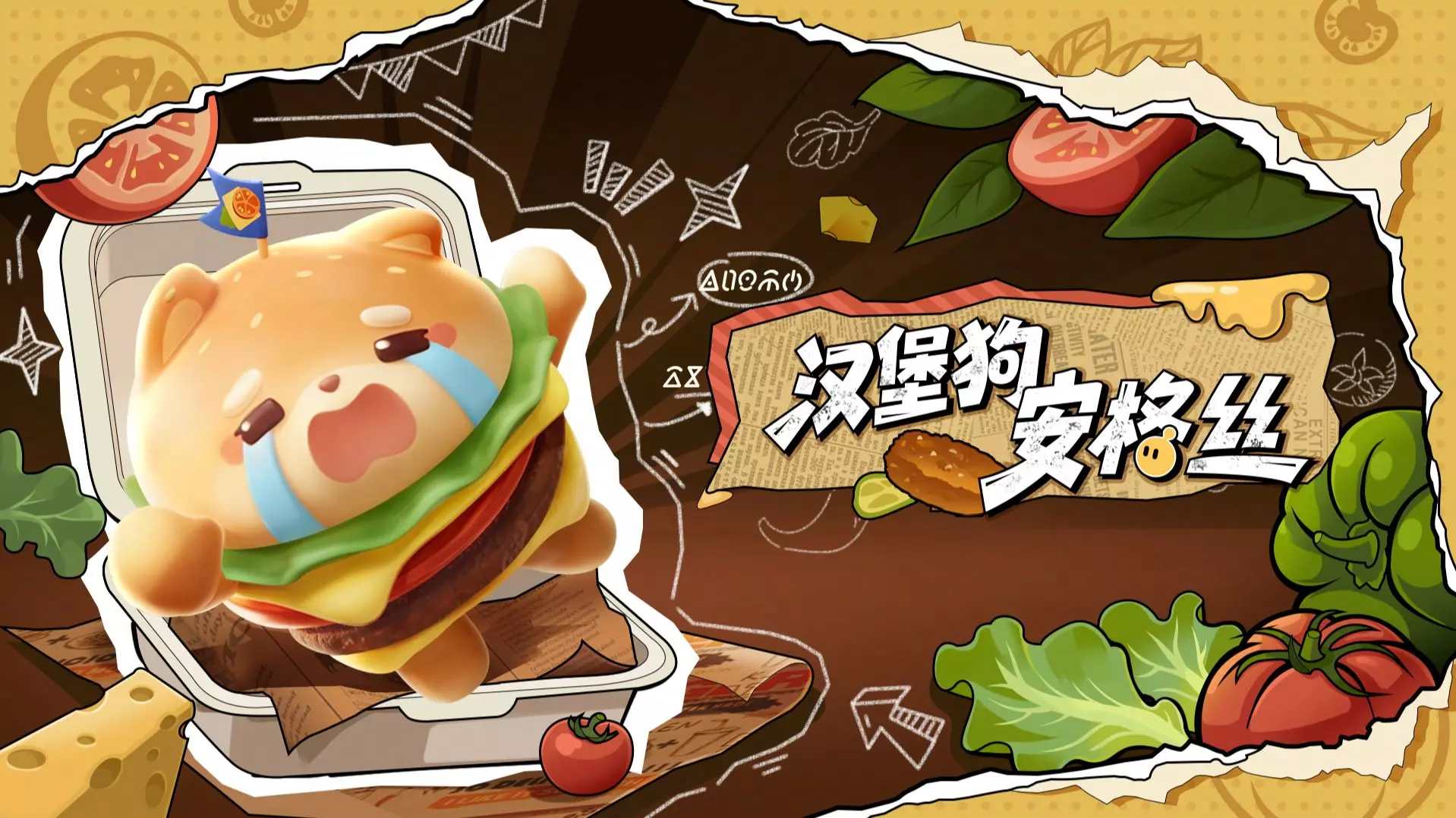 健康低脂的风,还是吹到了蛋仔岛~高热量零食瞬间被打入“冷宫”,难道是炸鸡不脆了?芝士酱发腻了?面饼变坨了?可大家的眼神,分明还是充满爱的呀...... 💥炸鸡三宝💥 有请在这场越狱行动里最有反差感、也是最有领袖气质的组合:炸鸡三宝! 当将派对季锁定在“零食越狱” 故事方向时,我们瞬间联想到让人又爱又恨的高热量顶流“炸鸡”,于是在保留了炸鸡形态的基础上,创新设计了三位性格迥异的“炸鸡块”——芥末凶、翅中宝、琵琶腿(咖位不分先后) 看上去不好惹的芥末凶是武力担当,可张口后的喜感大碴子味根本藏不住~头顶脆嫩葱花的翅中宝虽然是忙内团宠,但在越狱计划中从未掉过链子;琵琶腿是团队的脑力担当,它戴着耳机看似对一切漠不关心,却能在危急时刻拿出完美的解决方案! >>外观彩蛋:炸鸡三宝向你发出健身邀请,锻炼是保持紧实肉质的秘密!蛋仔在炸鸡三宝的指导下成功举起杠铃后会有惊喜哦~ 🍔汉堡狗安格丝🍔 为大家带来快乐与满足的汉堡狗,其实它拥有着“悲伤”的小秘密——自带催泪属性、常被嫌弃的洋葱圈。于是我们决定将这个不可或缺的点睛风味,化作角色最独特的灵魂。 在形象设计上,我们对汉堡狗安格丝进行了软萌柴犬和经典牛肉汉堡的奇妙融合:哭唧唧小萌脸配合圆滚滚的汉堡胚身体,看上去无助但可爱;软乎乎的耳朵和小爪,让人克制不住想rua的冲动! 这个总在治愈别人的小哭包,其实心里装着温暖的小太阳,它又藏着什么烦恼呢?让我们一起在故事书里寻找答案吧。 🌶️ 火鸡面辣仔 🌶️ 热气腾腾的火鸡面,是越狱小队里最不服输的零食——自从被扔进冰箱底层那一刻,辣仔就一直铆足干劲决定逃出。无论失败多少次、摔倒的样子多狼狈,它都会抹一把脸上的辣酱,再次充满热情地高喊“再来!” 眉毛紧蹙,嘴巴嘟嘟,热血状态全开!它劲道的面条挂着下一秒仿佛要溅出来的红油辣酱,与越挫越勇的火爆脾气完美适配。永不言败的火鸡面当然绝不会坐以待毙,如果蛋仔们看见辣仔的话,一定要为它加油呀~