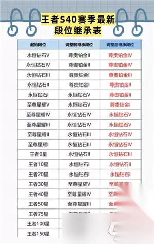 王者荣耀s40段位继承表: