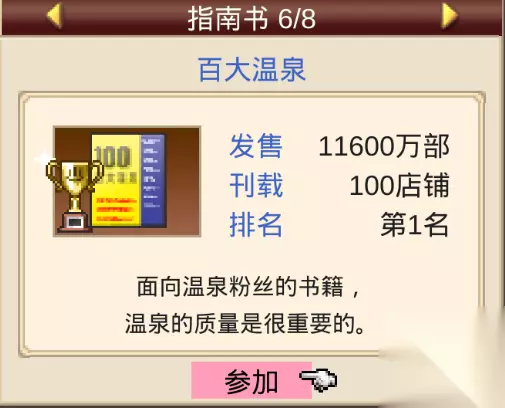 搭配得益不仅可以大都幅度增加人气,还能更快的在指南书“百大温泉”中名列前茅。