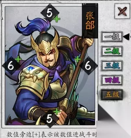 技能介绍 一级:【巧变】—有其他单位进场置于相邻时,若自己非本回合进场,则选择其相邻空格重新进场 二级:【兵列】—进场后,每有1个相邻友军,自己点数便+1(新增技能) 三级:【安营】—进场的当回合中,自己不会被翻面(新增技能) 四级:【陈营】—进场的当回合中,自己和相邻友军不会被翻面(【安营】升级) 五级:【阵列】—进场后,每有一个友军,自己点数便+1(【兵列】升级) 注:大师段位解锁 技能分析 张郃的技能非常符合他的历史评价。用兵【巧变】,善【兵列】【安营】。张郃依靠着三个技能,保证了自己的机动性,提升自己的四围点数,还加强了自保能力。