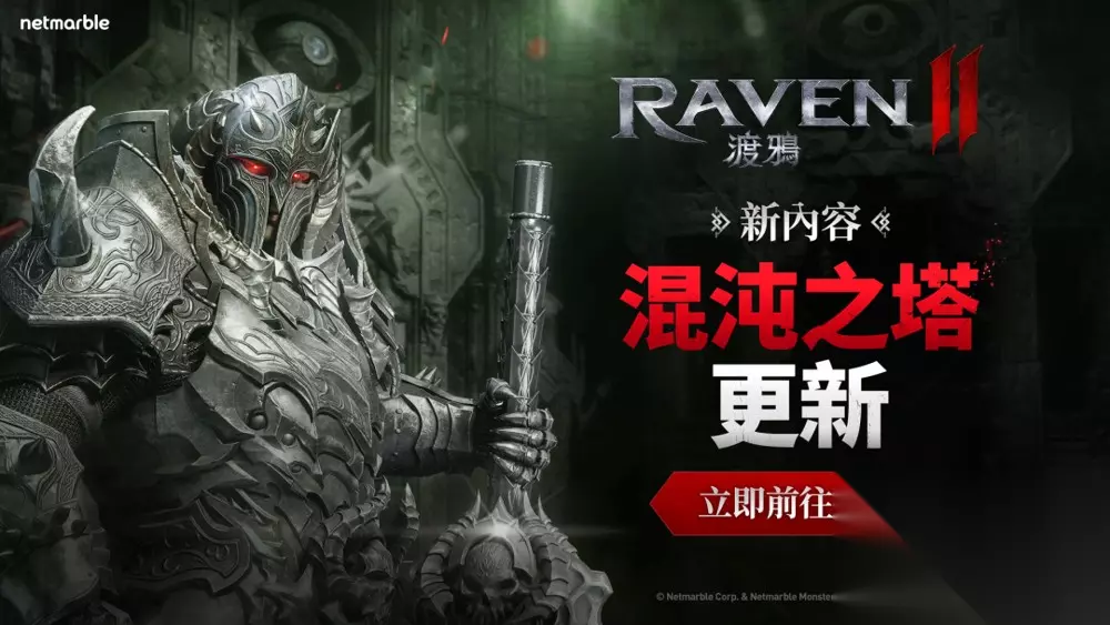 《RAVEN 2:渡鸦》第一个 PvE 游玩内容「混沌之塔」现已开放供玩家体验。「混沌之塔」共有 30 层,玩家必须击败居住于此处的怪物才能征服「混沌之塔」。而在「混沌之塔」中禁止使用增益、减益效果与 HP 药水,对玩家来说是巨大的挑战,玩家必须订定自己的策略来征服「混沌之塔」。 本次最新更新添加全新国际服「伊甸」。此外,《RAVEN 2:渡鸦》现正提供玩家「渡鸦 2 特别优惠券:神器」以纪念此次的新更新。玩家可以使用该优惠券来恢复优惠券追溯期间内被破坏的神器。