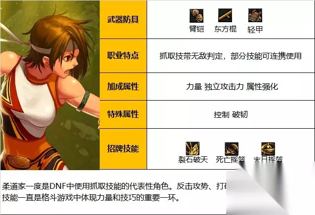 在DNF的神界版本中,柔道家(女)是女格斗家的最后一个职业,也是一个打击感超强的操作型职业。这个职业爆发速度快,伤害高,打击感强烈,操作反馈比较爽,除了大天域流,其他流派的契合度都相当高等特点,但控制在现版本几乎无用。因此,今天233乐园小编就给大家带来了,最新DNF柔道家(女)职业技能加点分享,供大家进行参考。 DNF柔道家(女)职业技能加点分享 职业简介