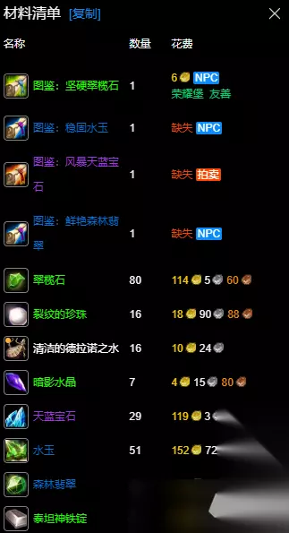 魔兽世界wlk珠宝300-450最省材料攻略需要制作的珠宝有不少,其中包括了各种翠榄石、风暴天蓝宝石、翡翠项圈等等。大家可以根据自己当前的等级,去收集材料来加工珠宝,一起来看下具体内容。