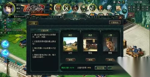 民为贵,社稷次之,君为轻。巡查民居是治理一个城市的基础,在巡查过程中,我们可以获得银币、金币和将器。不同的巡查地区,地点和人物搭配不同获得的奖励也就不同。每天有16次的巡查机会,当巡查次数用完后,每日凌晨4:00会恢复16次巡查。获得将器的主要途径便是巡查,所以使用好每日的巡查机会。