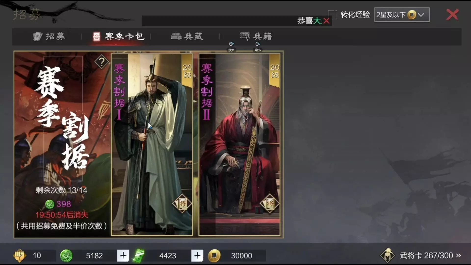 这是《率土之滨》的抽卡内容,玩家投入十个648共8万玉在一赛季抽卡,抽取魏晋名将卡池,过程中获得了嵇康、曹彰、贾诩等武将,卡池有招募次数内必出5星武将的机制。