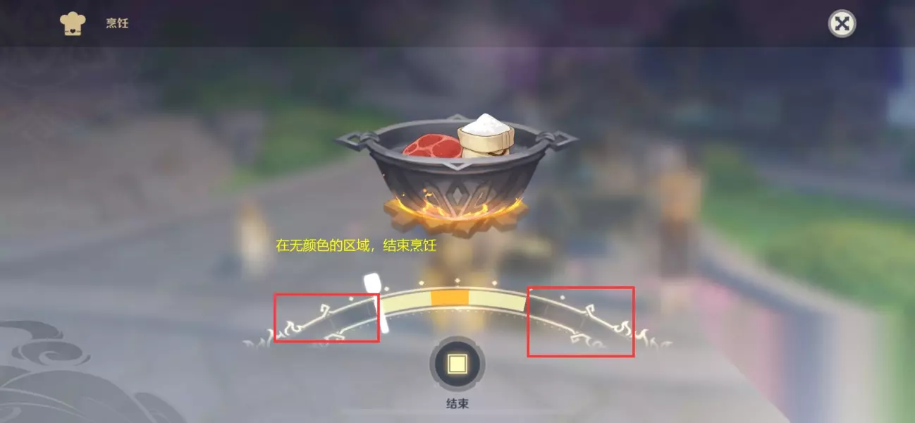 没有制作美味的菜,就需要烹饪,在橙黄色处结束烹饪,即可获得美味的菜 (如果已有,可忽略此步骤)