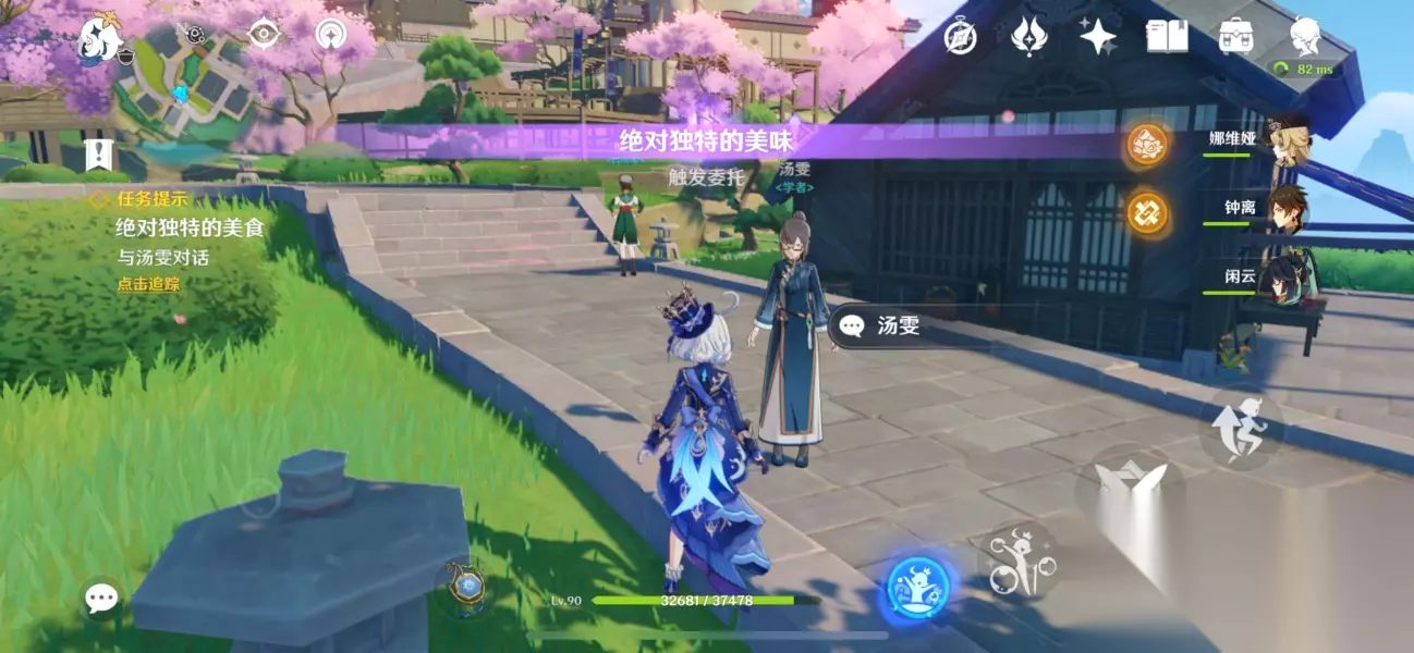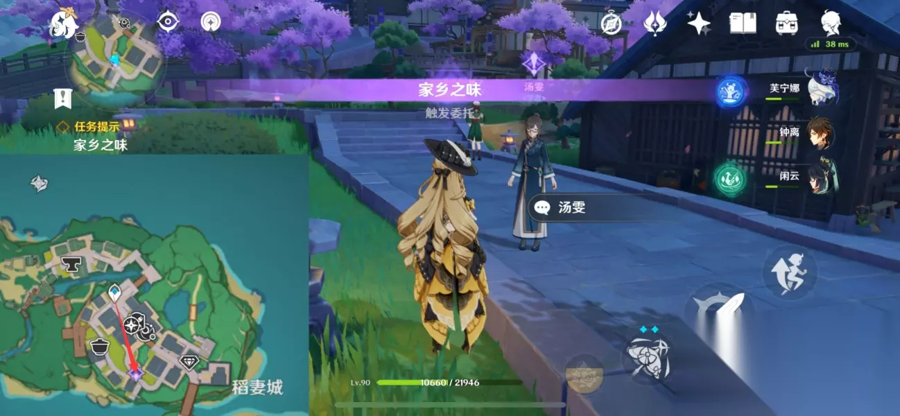 来到稻妻城街道上,跟汤雯对话,获取任务