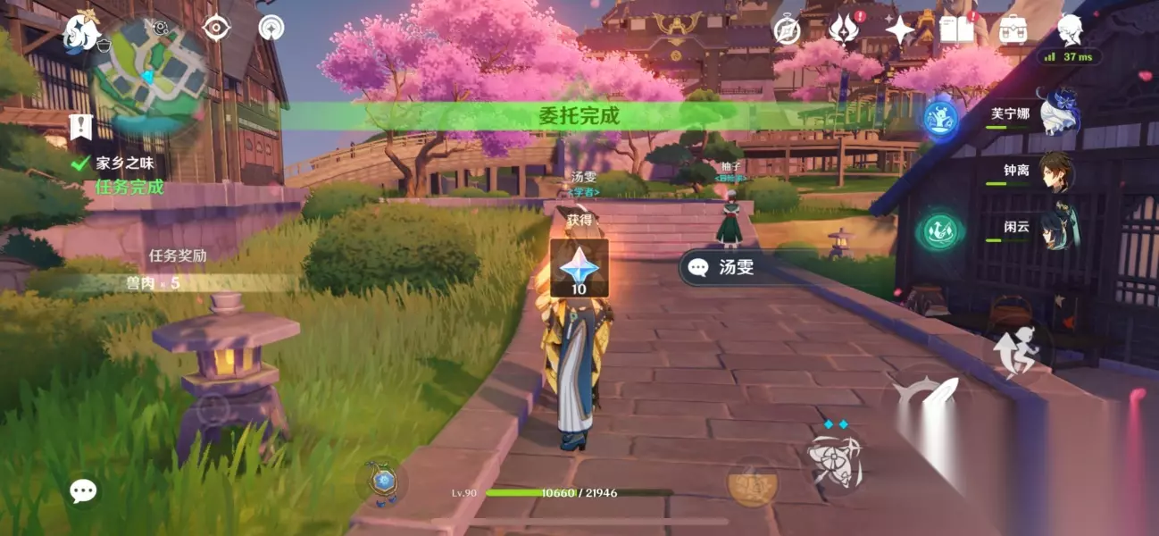 对话结束,完成任务,奖励10原石 同时获得成就——璃月一番(5原石)