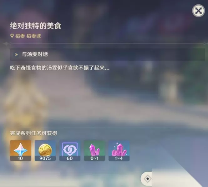 后续任务需要等待两天即可刷出 (第二天接到后续任务) 稻妻每日委托任务——绝对独特的美食