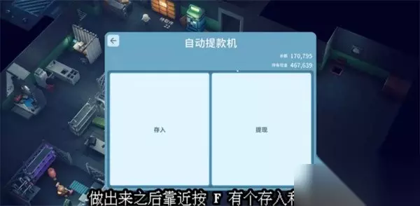 ATM机作用:可进行存取款操作,用于携带大额资金购买特殊物品。 获取途径:通过蓝图系统建造;若尚未解锁,也可前往农场镇市政大厅使用公共ATM机(但此处存在BOSS刷新风险,需注意安全)。 操作方法: 靠近ATM机后按 F键 可进行存入或提现。提现的金额将直接进入背包中,确保资金充足后,即可前往神秘商人处购买钥匙。