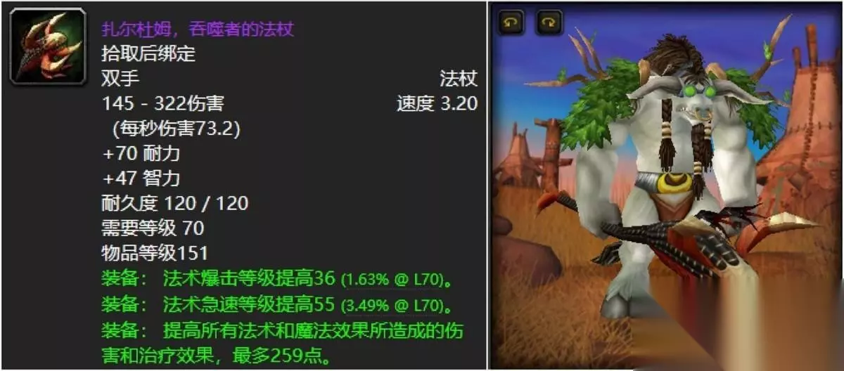 基尔加丹的金杖对于牧师、奶德以及专业术士三位大佬来说,绝对是最难忘怀的存在,毕竟万年刷马桶时代,畸形天赋加持之下,也是让金杖成为了高端术士的顶流标配武器,什么日灸配黑书统统可以放弃,不过有一说一,前夕的话貌似这东西奥法也能用,不知道屏幕前有没有大佬体验过的? 三:扎尔杜姆吞噬者的法杖
