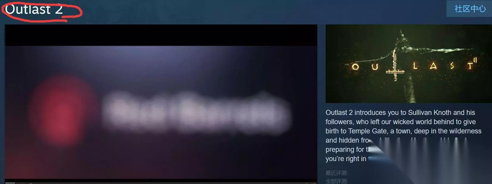 1、首先我们打开steam搜索英文名Outlast 2就可以找到这个游戏。