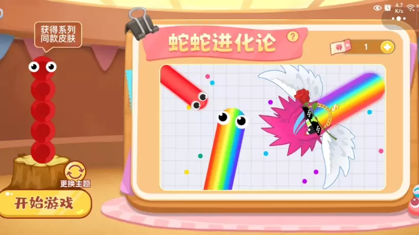 这是《贪吃蛇大作战》的新模式游戏实况,展示了蛇蛇进化论等新模式玩法,还有贪吃蛇成长进化、对战的游戏过程,当前红色贪吃蛇长度1428,正朝着进化为白银·玻璃蛇红宝的目标前进。
