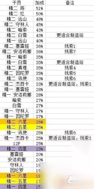 另外,会客室等级也有加成。3级会客室加成是25%,鉴于会客室不能降级,这里不作详细讨论 然后就是大家更关心的干员加成排序