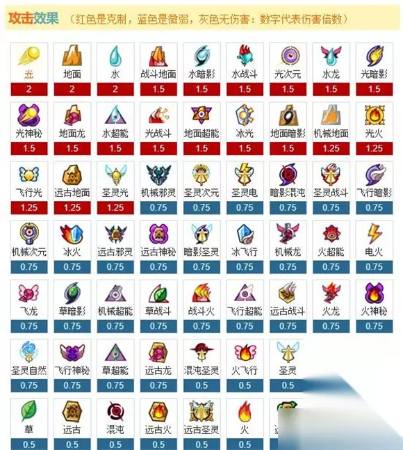 赛尔号属性克制表2022最新一览 属性的攻击克制关系(克制、普通、微弱、无效)。 克制:2 普通:1 微弱:0.5 无效:0 火属性克制表