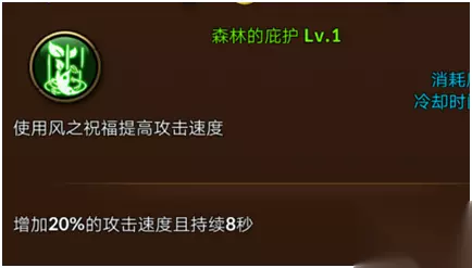 而游侠除了必带凝神射击以外,还非常推荐放弃疾风爆射,带森林的庇护。因为疾风射击属于AOE技能,虽然致命狙击的攻击速度比疾风射击慢,但是有了森林的庇护这个加攻速的BUFF后,就能平衡这样的缺陷了。