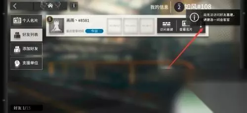 5.接着再在【好友列表】页面选中要访问的好友,之后点击【访问基建】功能。