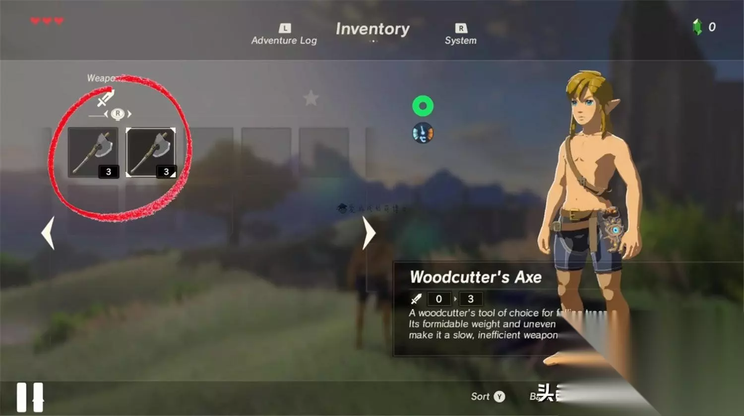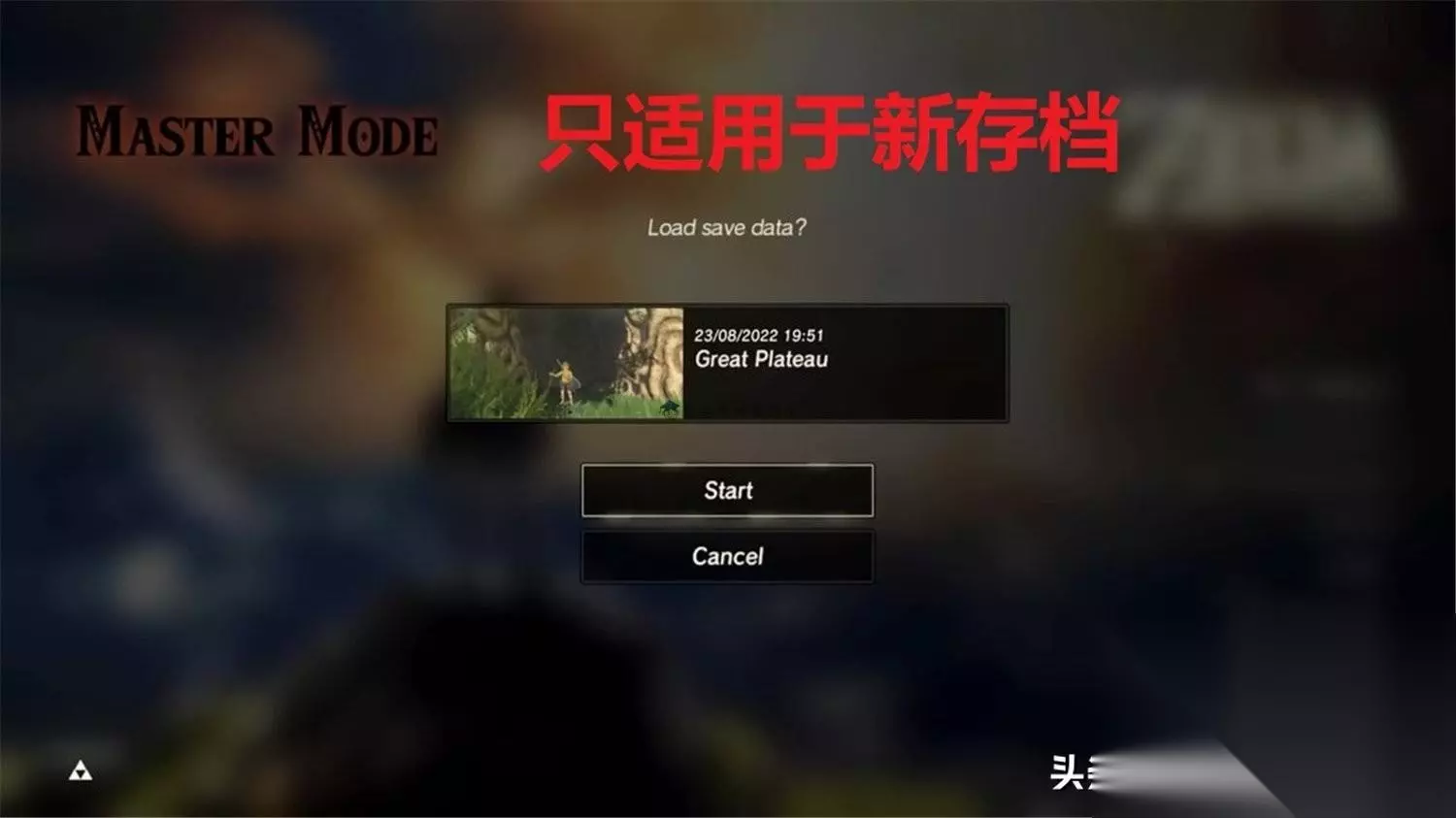 林克离开复苏神庙后,需要捡起放在附近的伐木斧并且存档。然后,要精准地跳到旁边那座湖中央的莲花圈圈内,拿到游戏的第一颗克洛格种子,而游戏也会在此时自动存档。我们跳回游戏的标题画面修改游戏的难度,并读取过去的旧存档。
