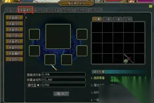 3、在使用的时候使用一块混沌玉就能够保障玩家拆分可以成功。 4、在鬼斧神工里找到装备打造,放入想要拆分的装备和黑水晶就能进行拆分。