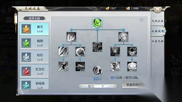 天域水晶 1、玩家一共拥有5个不同的水晶,每个水晶可以使用水晶碎片进行升级并增加战力,最大升级50级; 2、水晶等级越高,可以在水晶技能天赋中学习越高的技能,不够等级时无法进行技能学习; 3、水晶碎片可以使用水晶积分进行兑换,积分通过参与跨服水晶幻境活动获得,碎片也可以在商店进行购买;