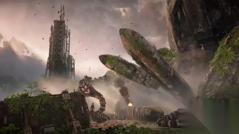 运载火箭成功砸到了蛇形机械。 但是埃洛伊所处的平台也是摇摇欲坠。