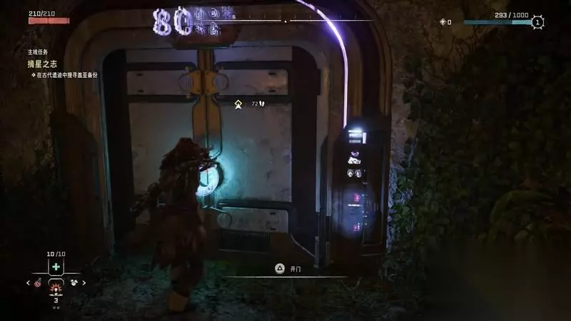 来到遗迹上方,激活绿色的控制器。