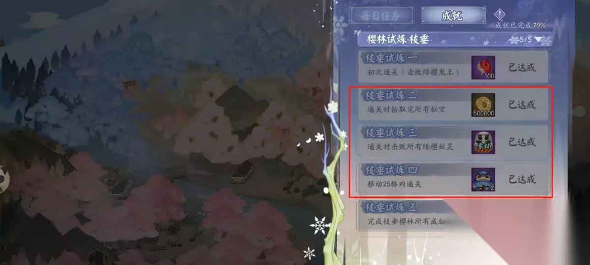 5个樱林的活动任务其实都大差不差,但是樱林的地图差别还是挺大的,每一张地图都有不同的玩法,给玩家们带来一些有趣又有难度的挑战。美术组的设计还是挺有意思的,没有进行挑战的樱花树是绿色的,挑战成功之后就变成了粉色的樱花树,让那个玩家来手动开启樱花季节,在游戏中感受一下春天的气息,三次元中的樱花应该也开了。