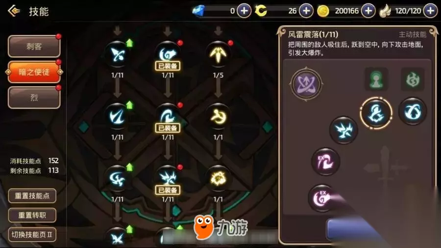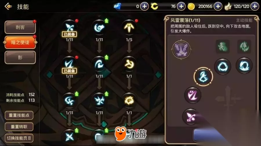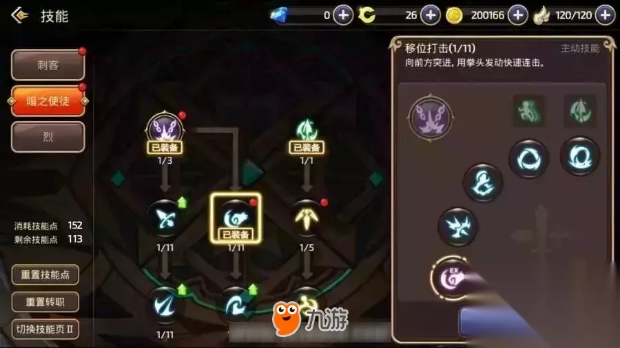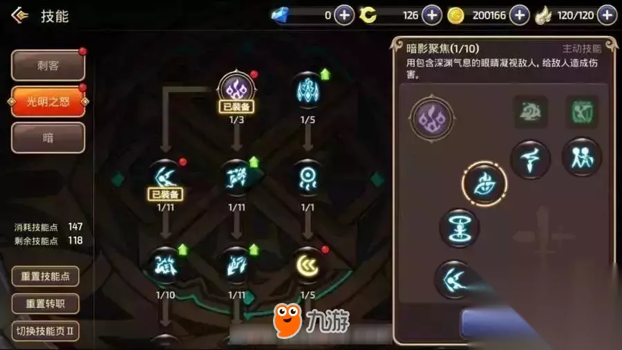 暗PVE技能推荐: 暗影召唤术:制造出自己的分身,分身在使用冒险家部分技能后消失。 暗夜爆破:在前方召唤魔法阵,持续的攻击敌人,最后还会爆炸。 黄昏之光:在自身周围形成黑暗查克拉屏障,对屏障内的敌人造成伤害。 阿滋娜之约:召唤猫忍者,猫忍者在死亡和解除召唤之前,会为全部队友增加攻击力。 黑暗线条:用匕首突进并砍杀敌人,突进后可按攻击键再次施展(突进技能,能快速的接近远程职业或者追击逃跑的敌人)。