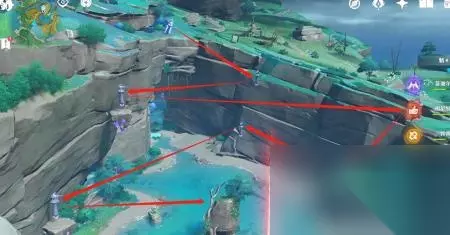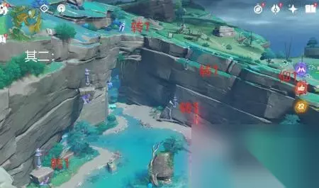 攻击个,取得圆形镇物。 回到任务处,朝地图右上角雷种子进入洞穴,在下瀑布旁取得棱形镇物。(方块解密:左1右2)